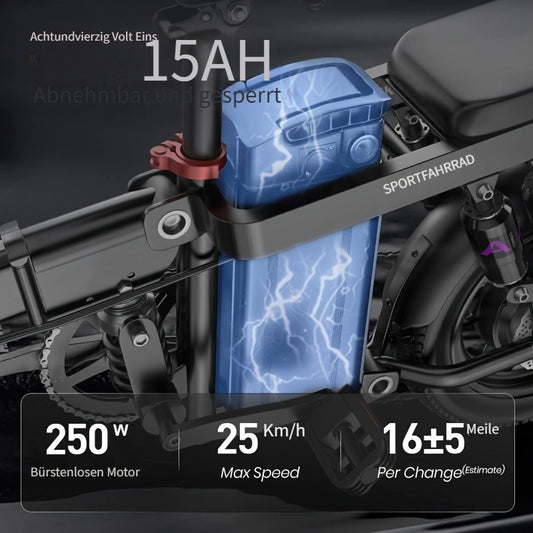 TOOfly | Marke Schwarz Zweirad-Scooter 48V Bürstenloser Motor 15ah Lithium-Akku 14-Zoll-Luftreifen LCD-Display 250W Motor Pendler Freizeit-Scooter Erwachsene Elektrofahrrad Leichtes Design Faltbares Elektrofahrrad