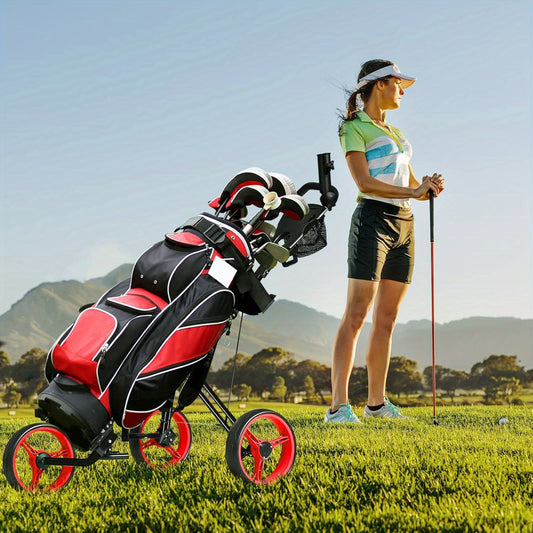 3-Rad zusammenklappbarer Golf Trolley, mit Sitz, höhenverstellbarer Griff, Scoreboard Rabellone, Getränkehalter, Schirmhalter und Fußbremse