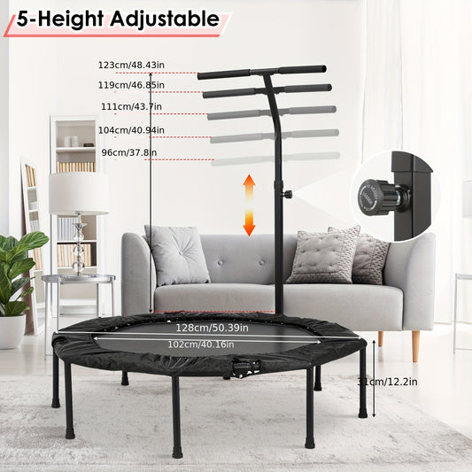 Indoor-Trampolin, Durchmesser 101 cm, faltbares Fitness-Trampolin, Jumping-Fitness-Trampolin, Belastbarkeit 150 kg, verstellbare Handlaufhöhe, Ausdauertraining, für alle Arten von Menschen