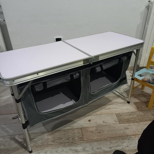 Ultra-stabiler Aluminium Klapptisch - Tragbar mit Stauraum, 3-fach höhenverstellbar für drinnen und draußen, ideal für Grillfeste, Partys, Picknicks, Camping, Wandern & Strand