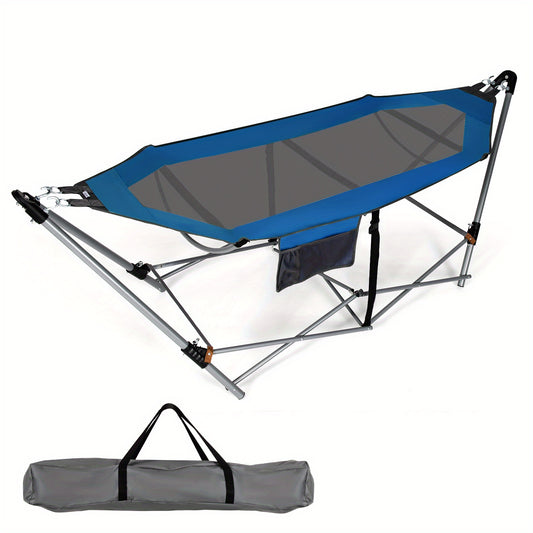 Hängematte faltbar mit Gestell, Seitentasche und Tragetasche, Hängemattengestell bis 150kg