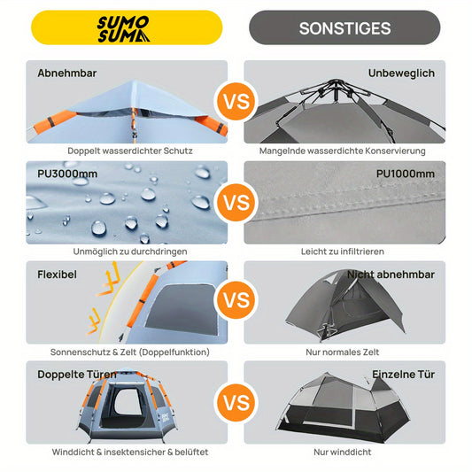 Sofort-Popup-Campingzelt, vollautomatisches Zelt, Outdoor-Sonnenschutz Verdickt Regenfest 3-4 Personen Schnell offenes Campingzelt zum Wandern, für Wanderungen oder Strand