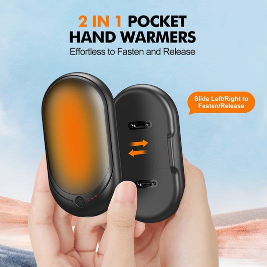 Babacom Handwärmer Elektrisch, Split 2er Set [20 Stunden Langes Aufheizen] Taschenwärmer Wiederverwendbar mit 3 Wärmestufen Schnelles Aufheizen, Ultraleicht & Tragbar für Outdoor/Camping/Arbeit