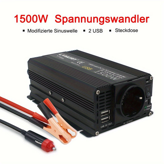 500 W/1500 W (Spitzenwert) Wechselrichter, Spannungswandler DC12 V auf 220 V AC mit Steckdose nach europäischem Standard, 2 USB-Anschlüssen, für Outdoor, Camping usw.