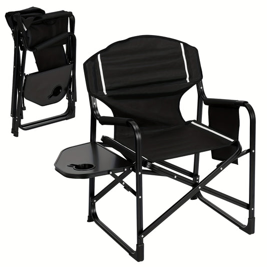 Faltbarer Campingstuhl, mit Beistelltisch, Getränkehalter, Seitentaschen, Angelstuhl, 150 kg/330.69 lb, für Camping und Angeln, Picknick, Schwarz
