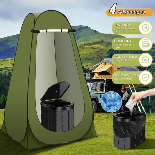 Tragbares Toilettenset für Camping, Pop-Up-Zelt, Camping-Toilette, 12 Toilettenbeutel, 12 Stück/Pack Flüssigabfallgel, waschbar, faltbar für Reisen, Wohnmobil und Outdoor
