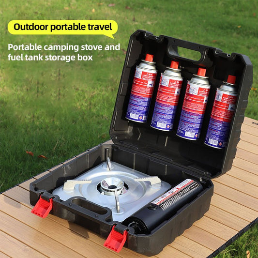 Tragbarer Campingkocher und Brennstoffkanister-Aufbewahrungsbox, PVC-Lebensmittelmaterial ohne Kontakt, kompatibel mit Butanbrennern und Gasflaschen (Kocher und Flaschen nicht im Lieferumfang enthalten) - Keine Zündfunktion Outdoor-Kochgeschirr-Organizer-
