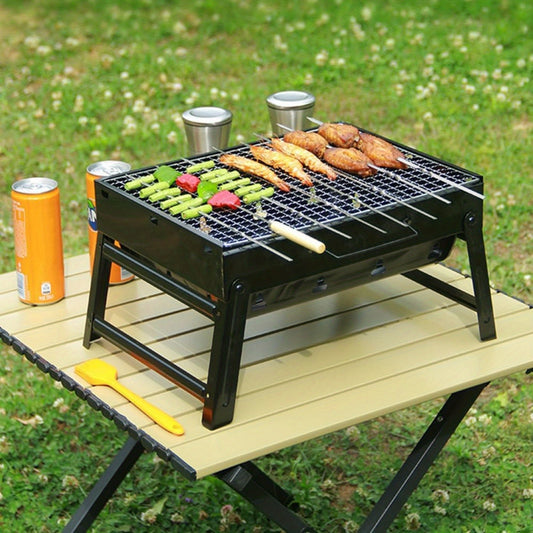 Camping BBQ Grill, faltbarer Edelstahl Holzkohlegrill, tragbarer BBQ Grill für Büro, Schreibtisch, Outdoor und Picknick mit BBQ-Rauchhaube für Garten, Hof, Camping und Reisen.