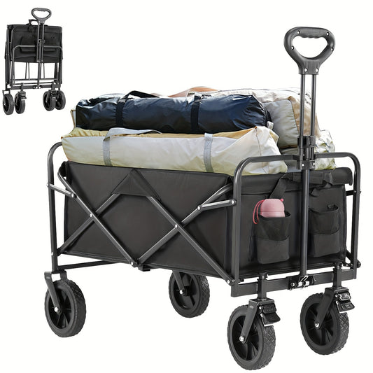 Bollerwagen Faltbar Strandwagen Transportwagen (mit Bremsen 2 Netztaschen Belastbar bis 150KG), Für jedes Gelände Faltbarer Handwagen Strand Camping Einkaufen