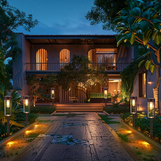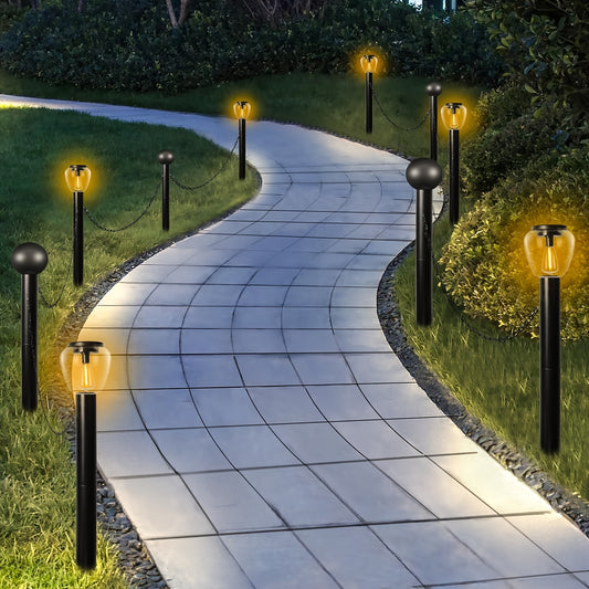 Solarlampen-Set mit Kettenglied, Set mit 3 Leuchten und 2 dekorativen Säulen, große Solarleuchten Wolframlicht