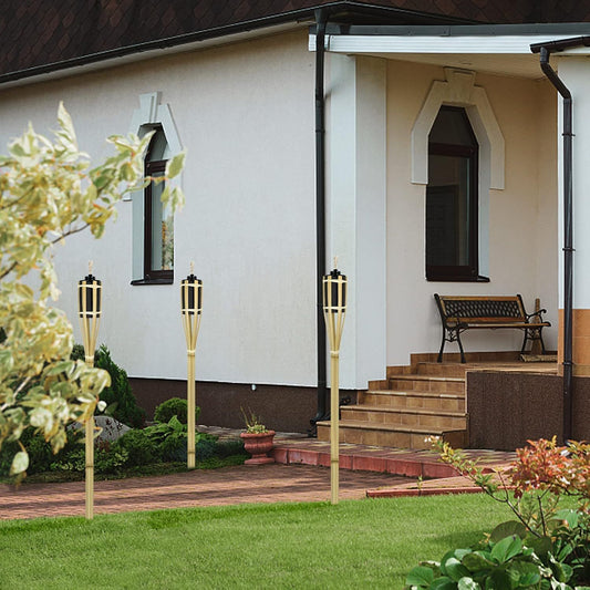 12er-Set Gartenfackeln für den Außenbereich, Bambusfackeln, Ölfackeln mit brennbarem Docht und Öltank aus Metall, Öllampe, Wegbeleuchtung für Gartenpartys, Wegbeleuchtung, Party