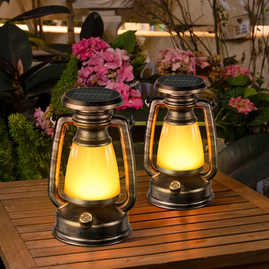 2 Stück Vintage Solar Laterne, Gartenleuchten Retro Design LED Sturmleuchte Mit 3 Lichtmodi Und Zwei Lademodi Laternen Für Außen Für Garten Balkon Terrasse Weg Hof Deko Camping