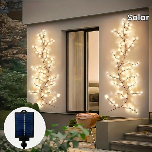 Beleuchtete Weidenranke mit Solarbetrieb und 8 Beleuchtungsmodi, Lampenschirm aus Acrylnitril-Butadien-Styrol, betrieben mit Lithiumbatterie, künstliche Pflanzenleuchte für die Außenwanddekoration von Terrasse, Hof, Rasen und Garten