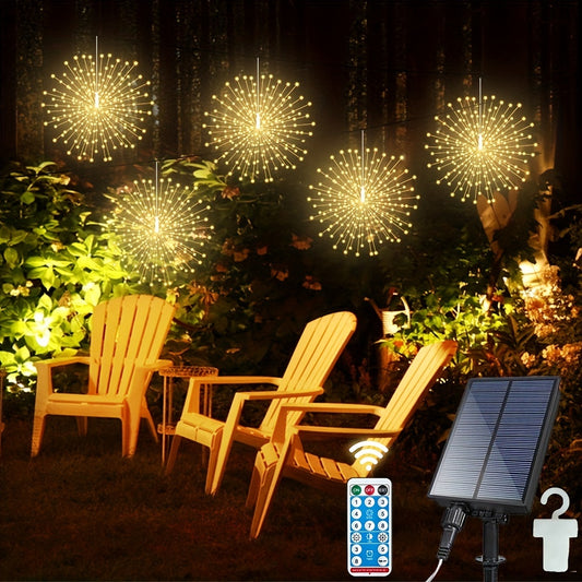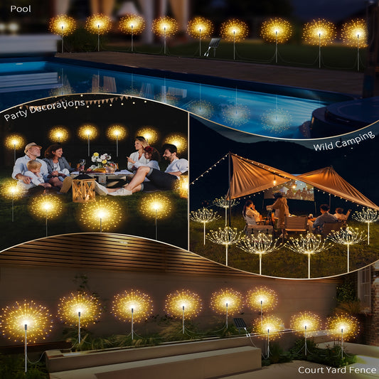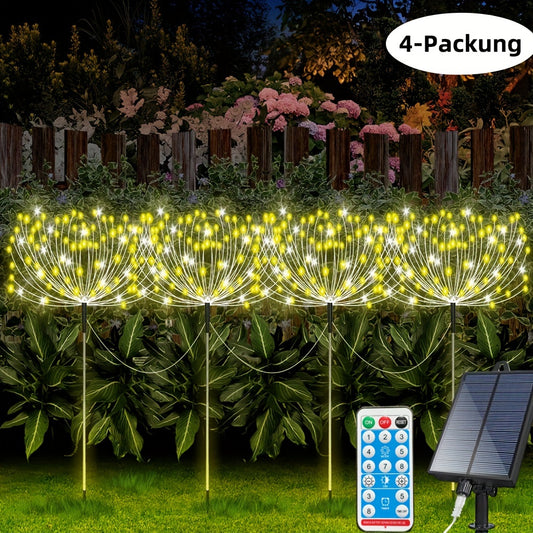 Solar-Stecker-Gartenleuchten, Solar-Feuerwerkslichter 8 Beleuchtungsmodi mit Fernbedienung, 3 Helligkeitsstufen Outdoor DIY Feuerwerkslampe für Weg-, Party- und Hofdekoration