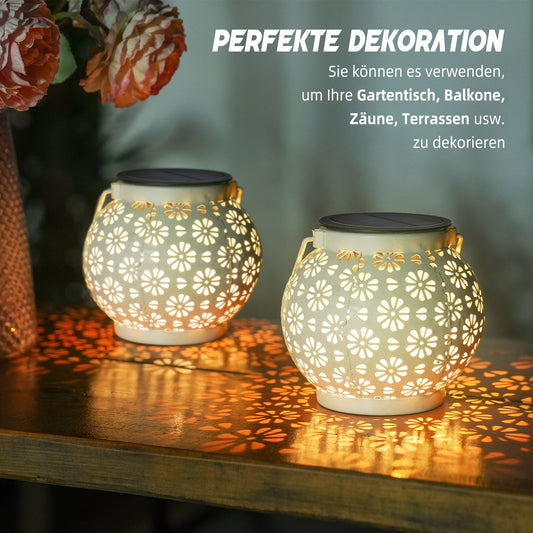 Solarlaternen für draußen 2 Stück, Metall Solarlaterne zum Aufhängen im Freien, LED Solarlampen für draußen Gartendekoration für draußen Veranda Tisch Balkon Terrasse Weg (weiß)