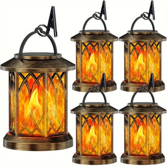 Solarbetriebene Flackernde Flammenlaternen Set (1/2/4 Stk.) - Wasserdichte Bronze Außenlaternen zum Aufhängen für Terrasse, Weg, Deck & Hofdekoration, Keine Fernbedienung