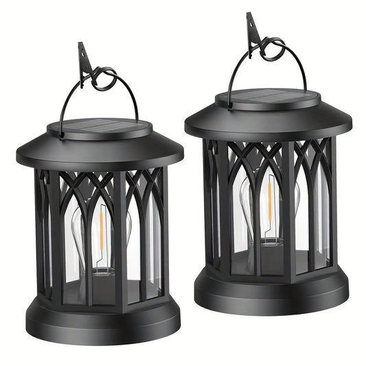 2 Stück Solarleuchten für den Außenbereich zum Aufhängen, Solarlaternen für den Außenbereich, Solarlaternen mit warmweißem Wolframlicht, Hängende Solarleuchten für den Außenbereich mit Clip für die Dekoration von Außenbereichen, Gärten und Balkonen.