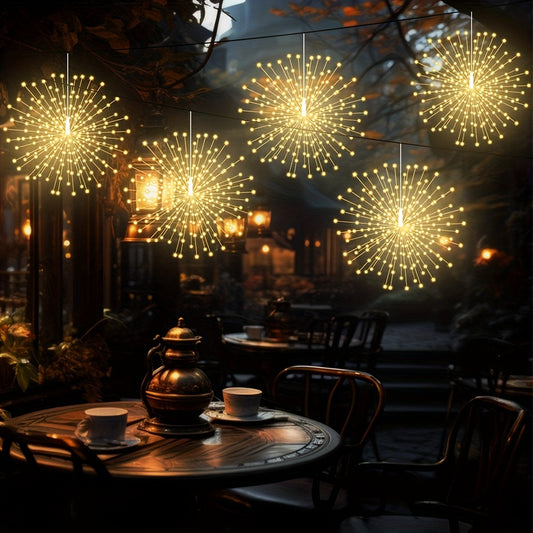 5 Stück 450LEDs Solar Starburst Kugellicht, Feuerwerkslicht Fernbedienung Timer 8 Modi Dimmbare Hängende Lichterkette, Kupferdraht Funkelnde Lichter für Terrasse Party Zelt Weihnachten