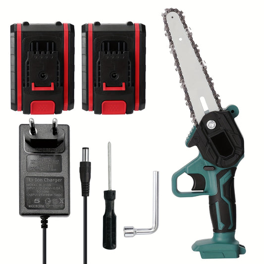 Undreem Mini-Kettensäge mit Akku, 15 cm, Akku-Kettensäge, elektrische Einhand-Kettensäge, elektrische Handkettensäge, 2 x 2000 mAh Akku