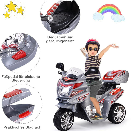 COSTWAY 6V Elektro Motorrad mit Musik und Scheinwerfer, Kindermotorrad mit Vorwärts- und Rückwärtsfunktion, Elektromotorrad 3 km/h für Kinder ab 3 Jahren Grau