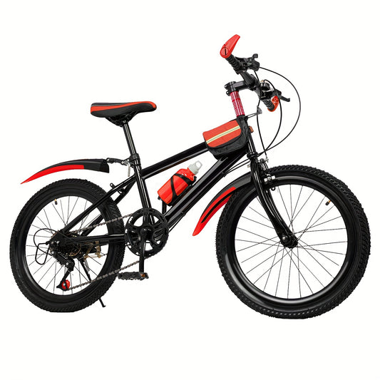 Kinderfahrrad Mountainbike, 20 Zoll, 7 Gänge, MTB Unisex, für Mädchen und Jungen, Jugendfahrrad mit Trinkflasche, Gepäckträgertasche, maximale Tragkraft 85 kg