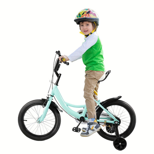16-Zoll-Kinderfahrrad mit Hilfsrad, höhenverstellbar, Anfängerfahrrad mit Stützrädern und Schutzblechen für Unisex-Kinder, Jungen und Mädchen von 5–8 Jahren (grün)
