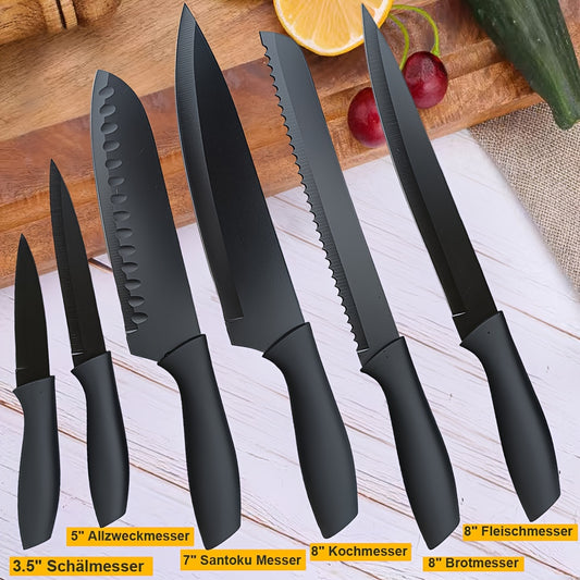 7-teiliges Küchenmesserset, professionelles Küchenkochmesserset, Kochmesserset mit scharfer geschmiedeter Klinge aus kohlenstoffreichem Edelstahl und ergonomischem Griff, schwarzes Titan-Messerset
