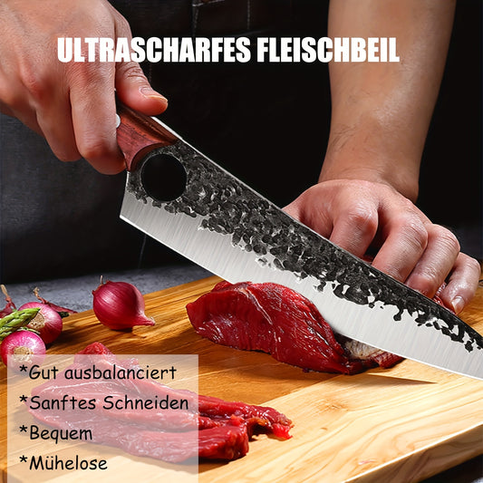 Japanisches Hackmesser für Fleisch, Full Tang Küchenmesser, extrem scharf, handgeschmiedetes Hackbeil, Fleischbeil für Küche, Camping, BBQ