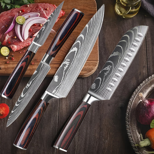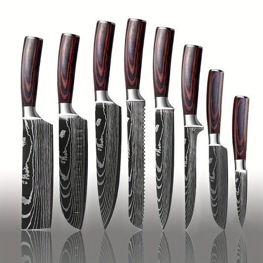 8-teiliges Messerset aus japanischem Stahl, Kochmesser-Set, Edelstahl-Besteck, Küchenmesser, Schälmesser, Santoku, Schneidemesser, Kochmesser