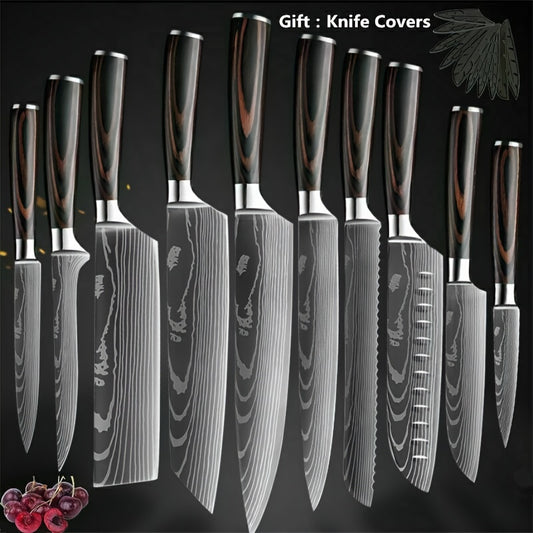 10-teiliges Küchenmesser-Set, ultra-scharfes Messer-Set mit Pakkawood-Griff, Messer-Set aus Edelstahl mit hohem Kohlenstoffgehalt für die Küche, Kochmesser-Set mit Geschenkbox, Küchenhelfer-Geschenke für Mama oder Papa