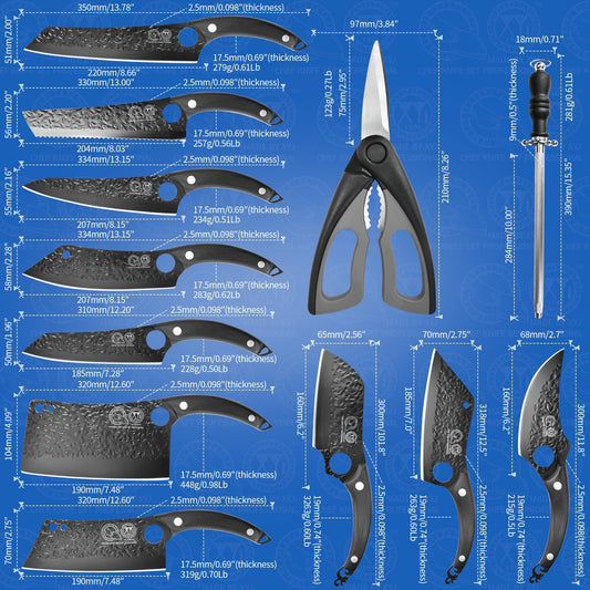 2-teiliges Set, Kochmesser, Küchenmesser mit Lederscheide - Handgeschmiedetes Kochmesser, perfekt zum Schneiden von Messern, japanisches scharfes Messer, Schere für Hühnerknochen und Lebensmittel