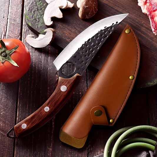 Handgeschmiedetes japanisches Kochmesser mit Ledertasche, Scharfes Ausbeinmesser mit Holzgriff, Outdoormesser, Küchenmesser aus Kohlenstoffstahl, Hackmesser