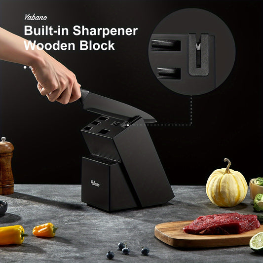 Yabano Messerset, 14-teiliges Messerblock-Set mit integriertem Schärfer, scharfes schwarzes Küchenmesserset aus Edelstahl mit Block, Küchenhelfer-Geschenke für Mama oder Papa