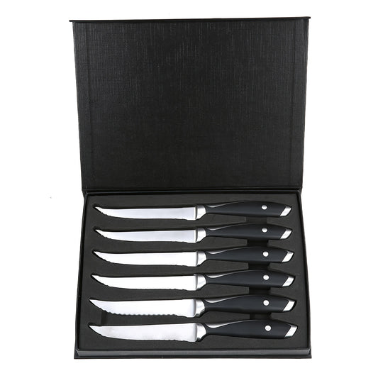 Aiibot 6-teiliges Steakmesser, Steakmesser-Set, Edelstahl-Messerset, 6-teiliges Steakbesteck mit scharfem Wellenschliff.