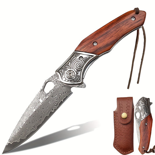 Taschenmesser aus Damaststahl, handgefertigtes Klappmesser mit geschmiedeter VG10-Damaststahlklinge, 67-Lagen-Damaststahlmesser, Holzgriff, ausgezeichnetes Geschenk
