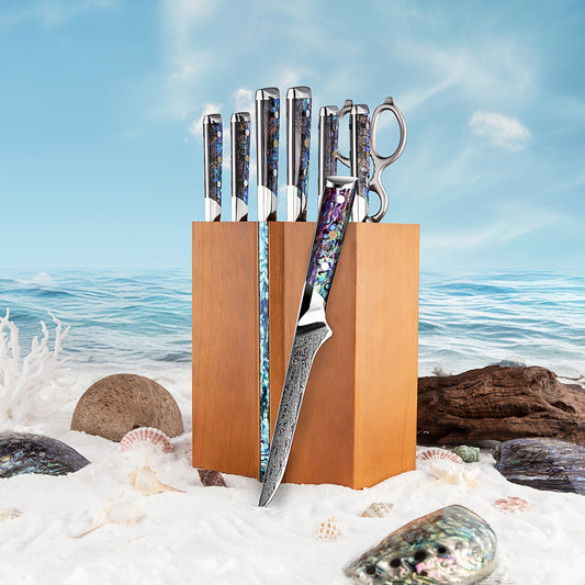 Damast Ausbeinmesser, FANTECK 14cm Fischfiletiermesser, VG-10 67 Lagen Damaststahl Scharfes Fischmesser mit Abaloneschalengriff und Walnussholzscheide