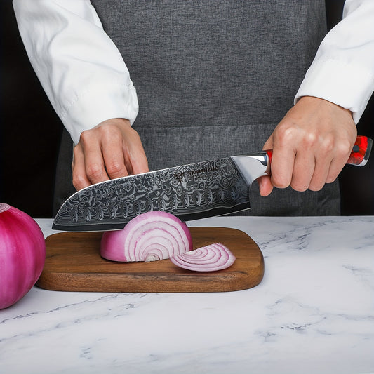 17.78 cm japanisches Santoku-Kochmesser, hochwertige deutsche Stahl-Ultra-Scharfe Klinge, professionelle handgeschmiedete Kochmesser mit ergonomischem Pakkawood-Griff