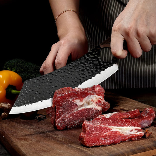 Knochenmesser Hackmesser Küchenmesser mit Lederscheide Handgeschmiedetes Kochmesser Professionelles Wikingermesser Japanisches Fleischermesser Outdoormesser für Küche Grillmesser