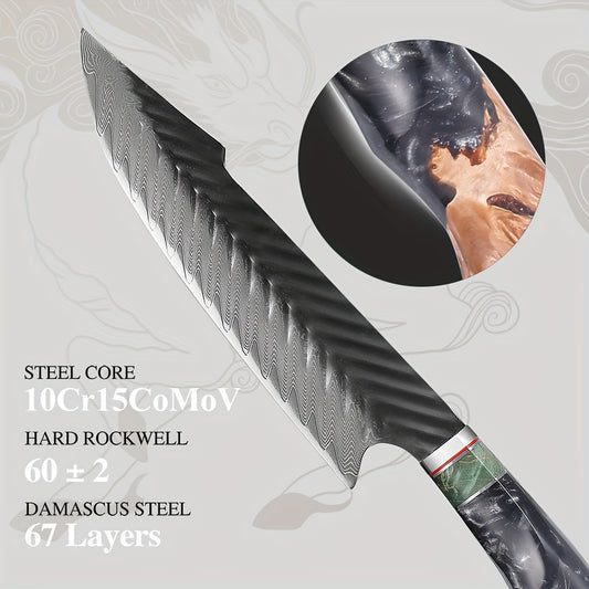 Damaszener Kochmesser 8 Zoll – Scharfes Küchenmesser, Kochmesser, 67 Lagen legierter Stahl, professionelle Küchenmesser mit Lederscheide, handgeschmiedeter Griff aus Harz und Holz, Küchenhelfer mit hochwertiger Geschenkbox