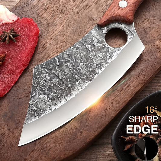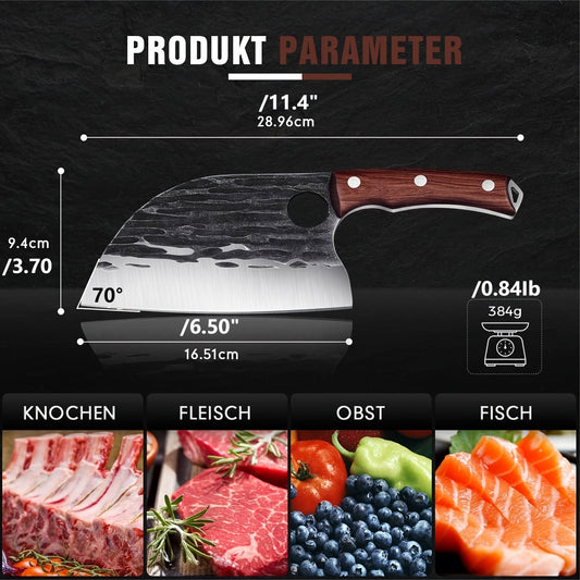 Hackmesser Serbisches Metzgermesser Handgeschmiedetes Kochmesser Küchenmesser Metzgerbeil Fleisch Gemüse Scharfes Ausbeinmesser mit Lederschieber Full Tang Outdoor für Grillen Camping
