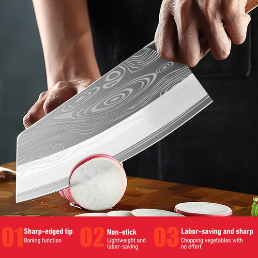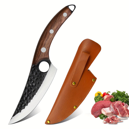Ein Kochmesser aus Japan mit einer Lederscheide, geschmiedetem Holzgriff mit Fingerloch, scharfem Ausbeinmesser für den Outdoor-Einsatz, handgeschmiedetes Chefmesser
