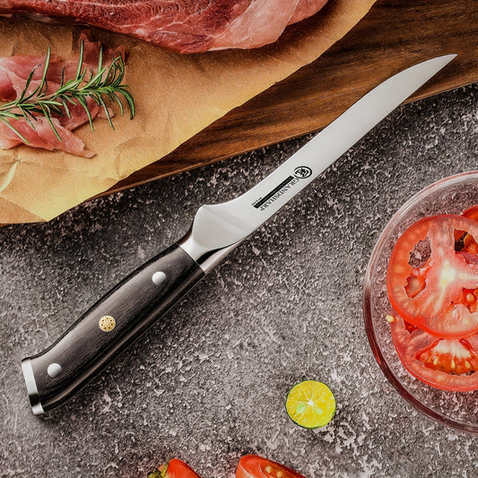 GRANDSHARP Scharfes Filetiermesser, Fleisch- und Ausbeinmesser 15 cm, professionelles Filiermesser, hochwertiges deutsches Edelstahl-Küchenmesser, Fischmesser mit ergonomischem Pakkaholz-Griff [Geschenkverpackung]