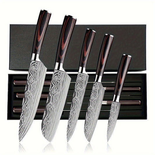 5-teiliges Küchenmesser-Set, ultra-scharfes Messer-Set mit Pakkawood-Griff, hochwertiges Edelstahlmesser-Set für die Küche, Kochmesser-Set mit Geschenkbox