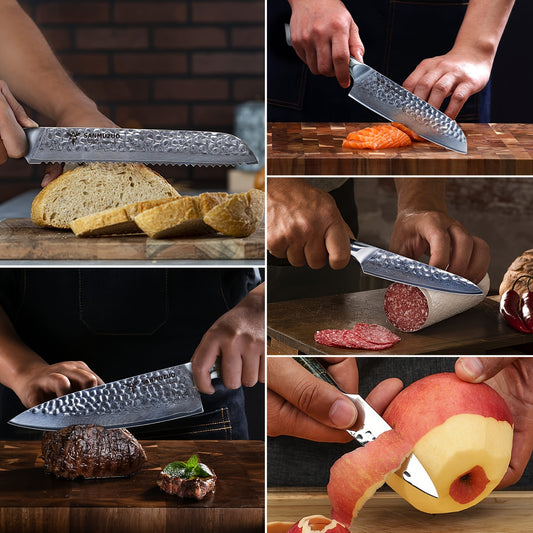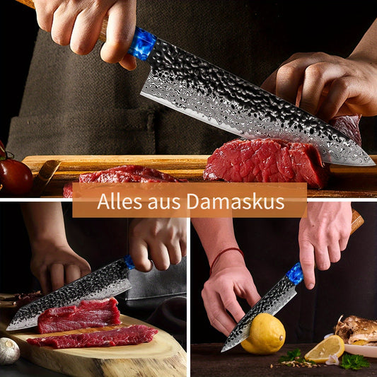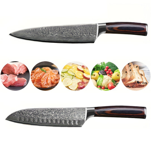 Damaszener Küchenmesser, 8 Zoll Kochmesser 7 Zoll Santokumesser Damaszener Edelstahl, 5-Sterne-Scharf Standard-Holzgriff
