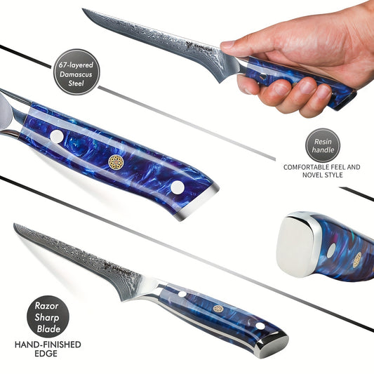 Damaszener-Bonningmesser - 7-Zoll-Filetiermesser, ultrascharfer japanischer VG-10-Stahl mit Harzgriff, professionelles Küchenmesser, Saphirblau der Xuan-Serie