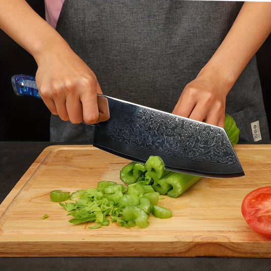 Damaszener Nakiri-Messer, 7.5 Zoll, ultrascharfer japanischer VG10-Stahl mit Harzgriff, professionelles Küchenmesser, Saphirblau der Xuan-Serie