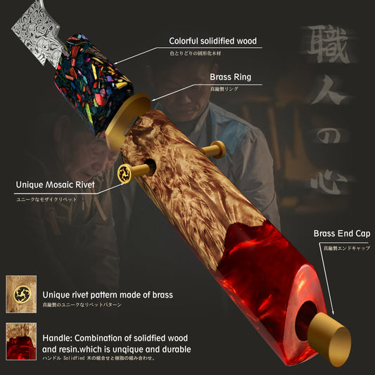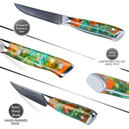 Damaszener Küchenmesser-Set, ultrascharfer japanischer VG-10-Stahl mit Harzgriff, professionelles Küchenkochmesser, perfektes Geschenk, Fantasy Orange aus der YAO-Serie