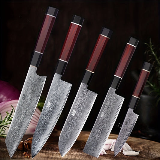1 Stück Japanisches Kochmesser, Neue Rote Samurai-Serie, Küchenmesser aus 67-lagigem AUS-10-Damaststahl, Ergonomischer achteckiger Griff aus Palisanderholz, Professionelles Mehrzweck-Santokumesser, Nakiri-Messer, Allzweckmesser, Ausbeinmesser, Kiritsuke-M