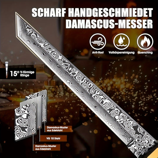 Messer mit Lederscheide, geschmiedetes Kochmesser Küchenmesser mit Fingerloch Holzgriff, scharfes Knochenmesser Outdoor Hackmesser, handgeschmiedetes Kochmesser