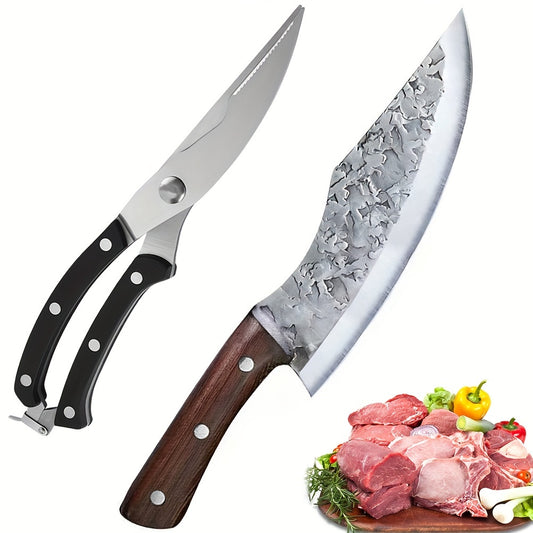 1 Stück Kochmesser, handgeschmiedetes Kochmesser, scharfes, professionelles Universalmesser für die Verarbeitung von Gemüse und Fleisch + 1 Stück Schere für Hühnerknochen und Lebensmittelzubereitung